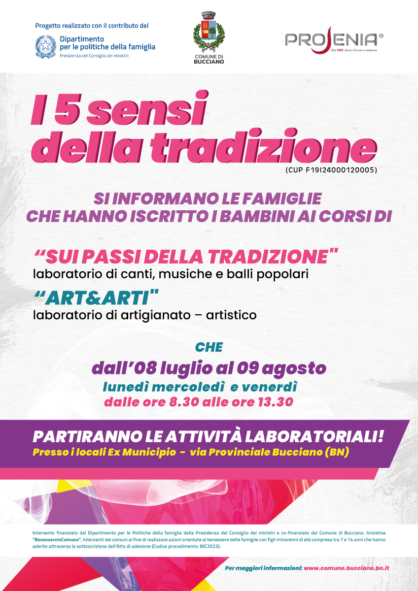 I 5 SENSI DELLA TRADIZIONE ATTIVITA' LABORATORIALI ORARI